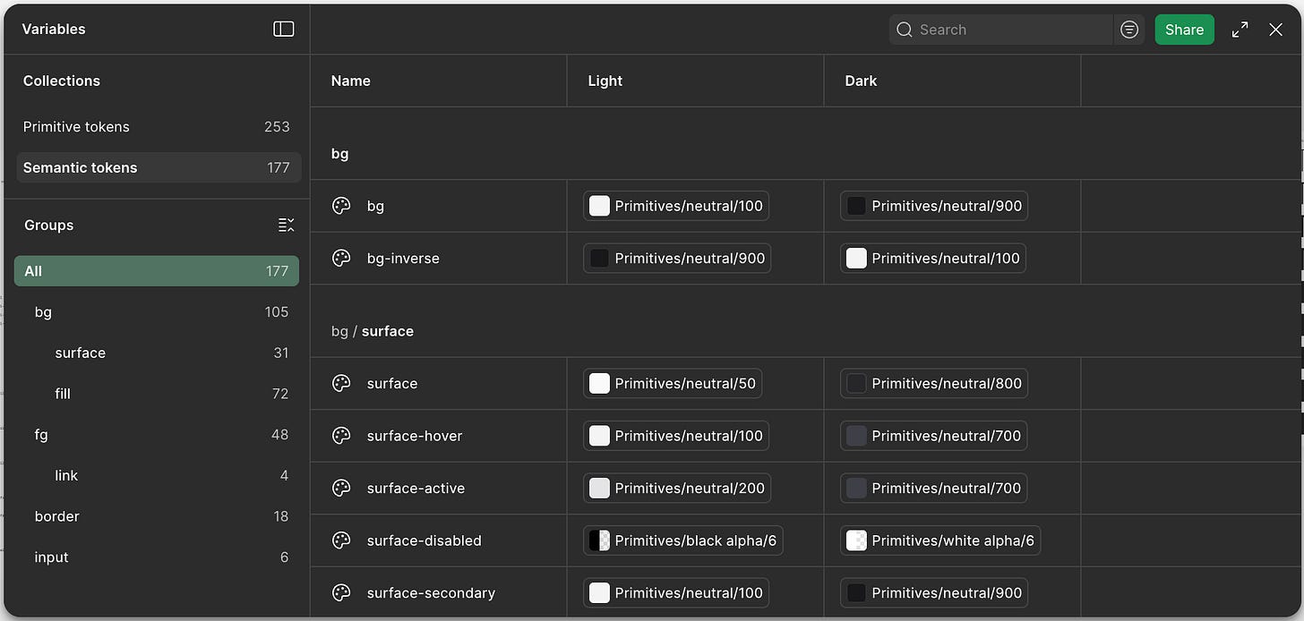 Figma knows that a button background should be #22C55E. What it can’t easily tell a developer is that this colour has a name in the team’s shared library (success-green), that it maps to a specific role in the design system (button.background.success), and that using the hex value directly instead of that named reference means the whole system breaks if that colour ever changes.